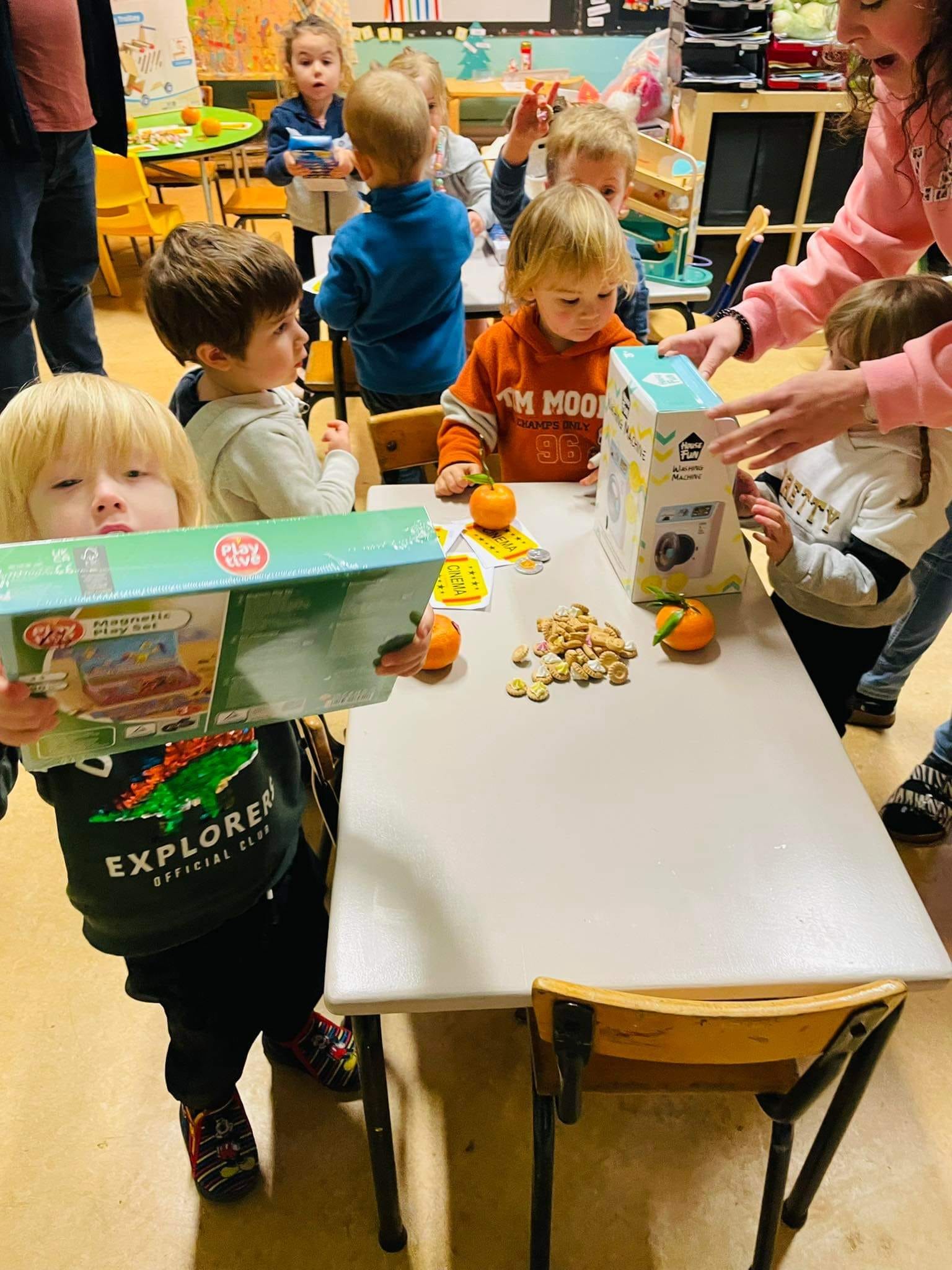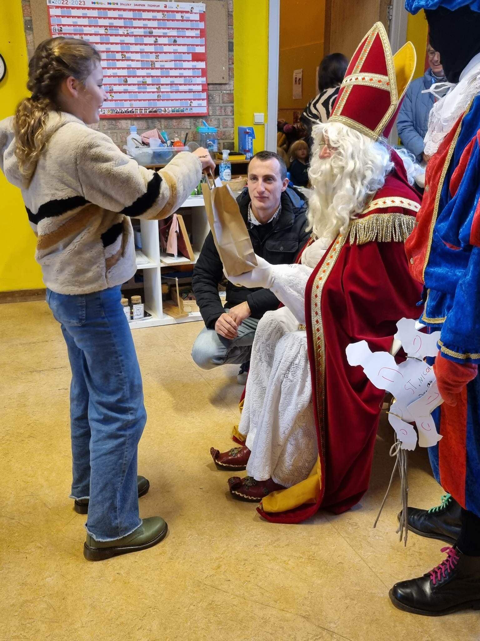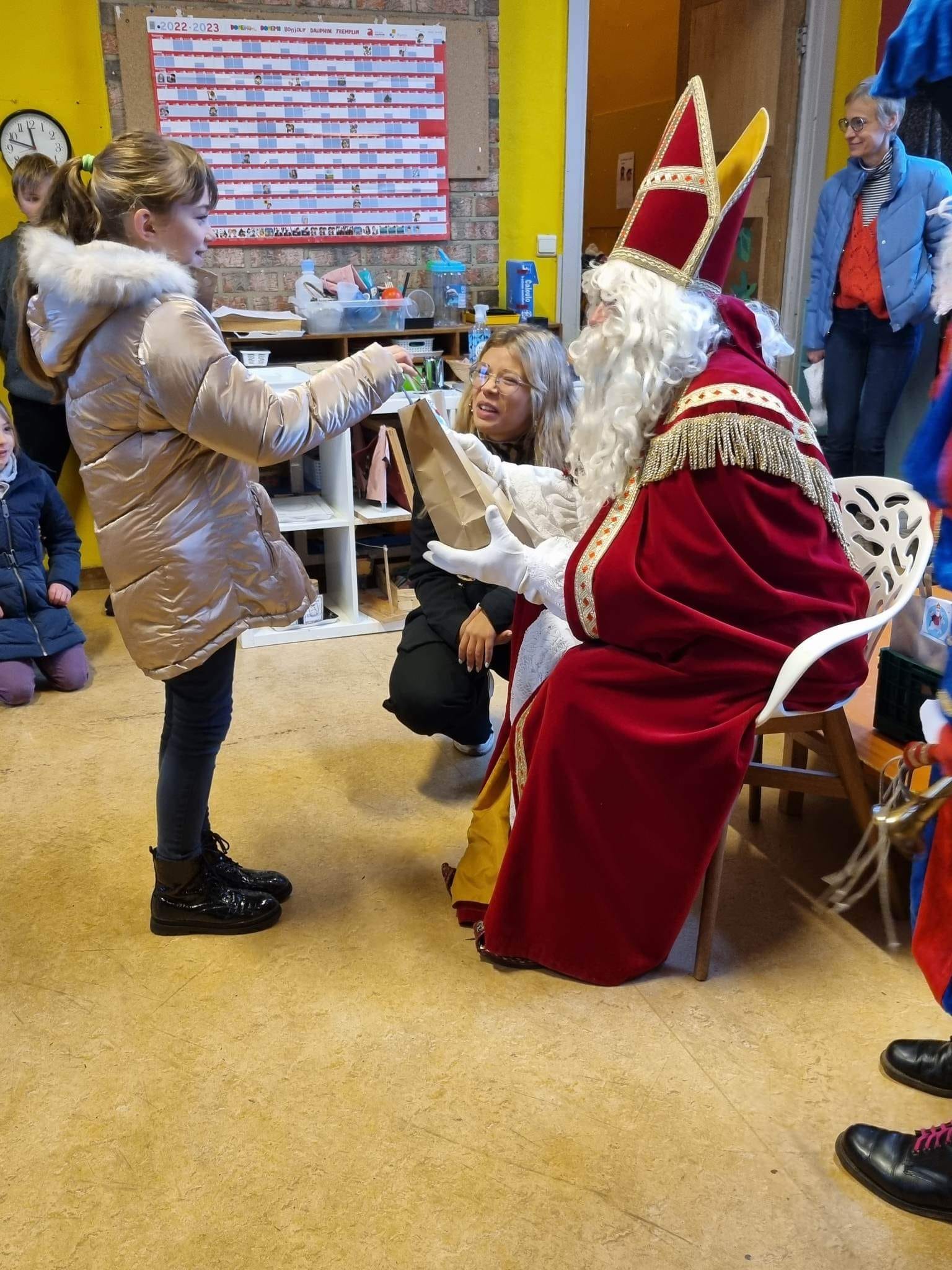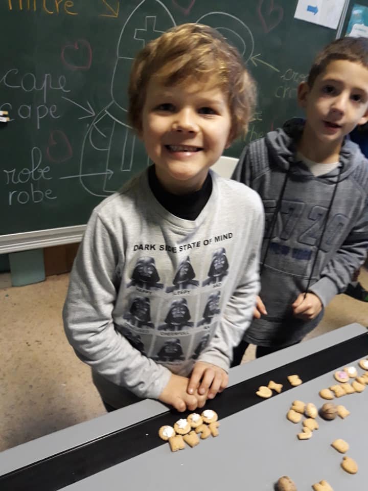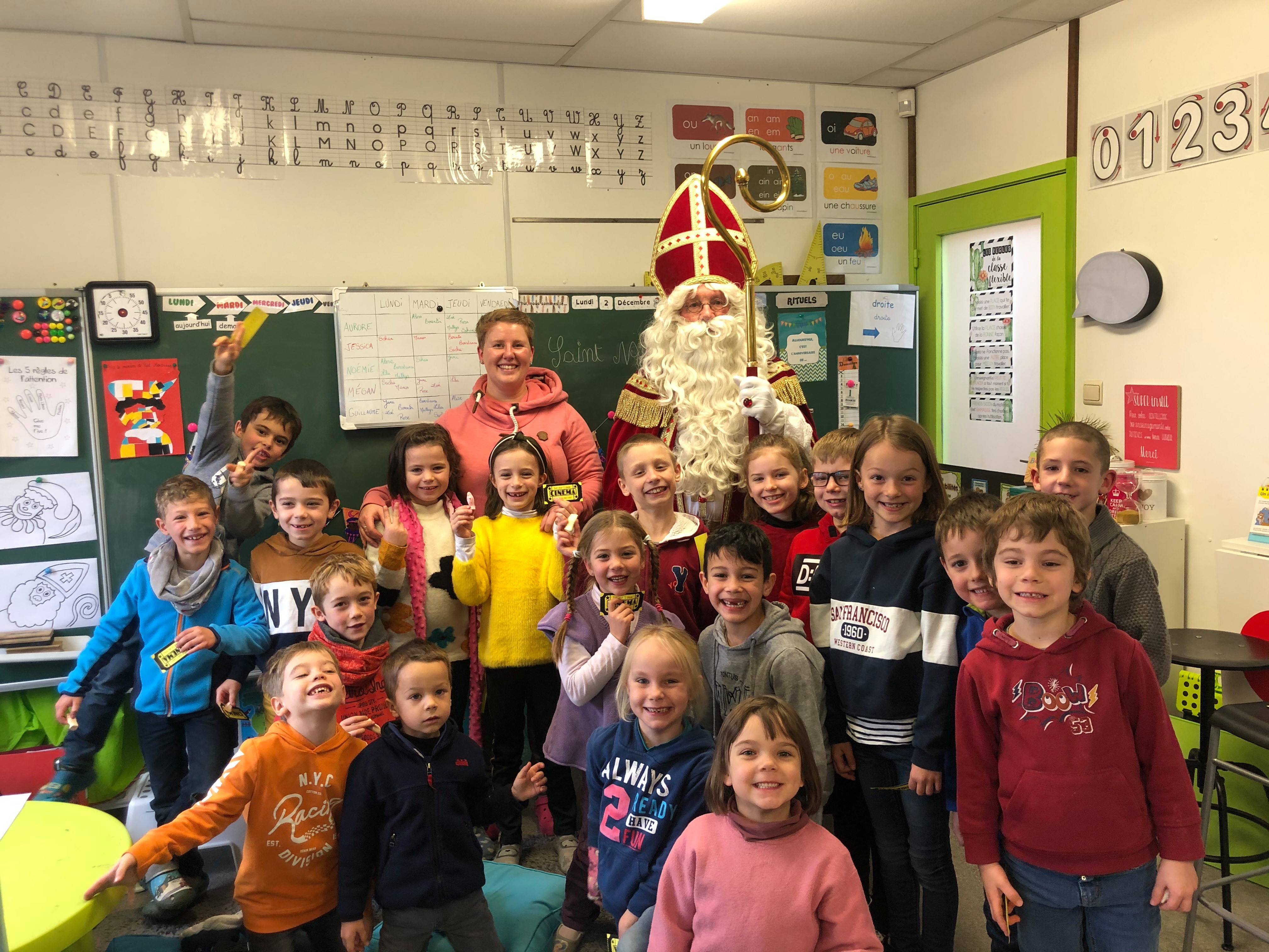 Saint-Nicolas est venu nous rendre visite ce vendredi 5 décembre et nous a bien gâtés avec l’aide du Comité des parents. Nous avons reçu: des jeux pour chaque classe, des livres mais également un sac à dos pour accompagner les enfants du maternel dans leurs activités de l’école du dehors ainsi que des places de cinéma pour le film zootopie 2 pour les enfants du primaire.