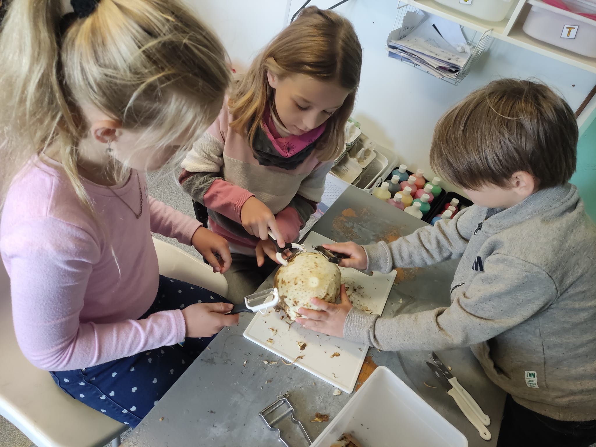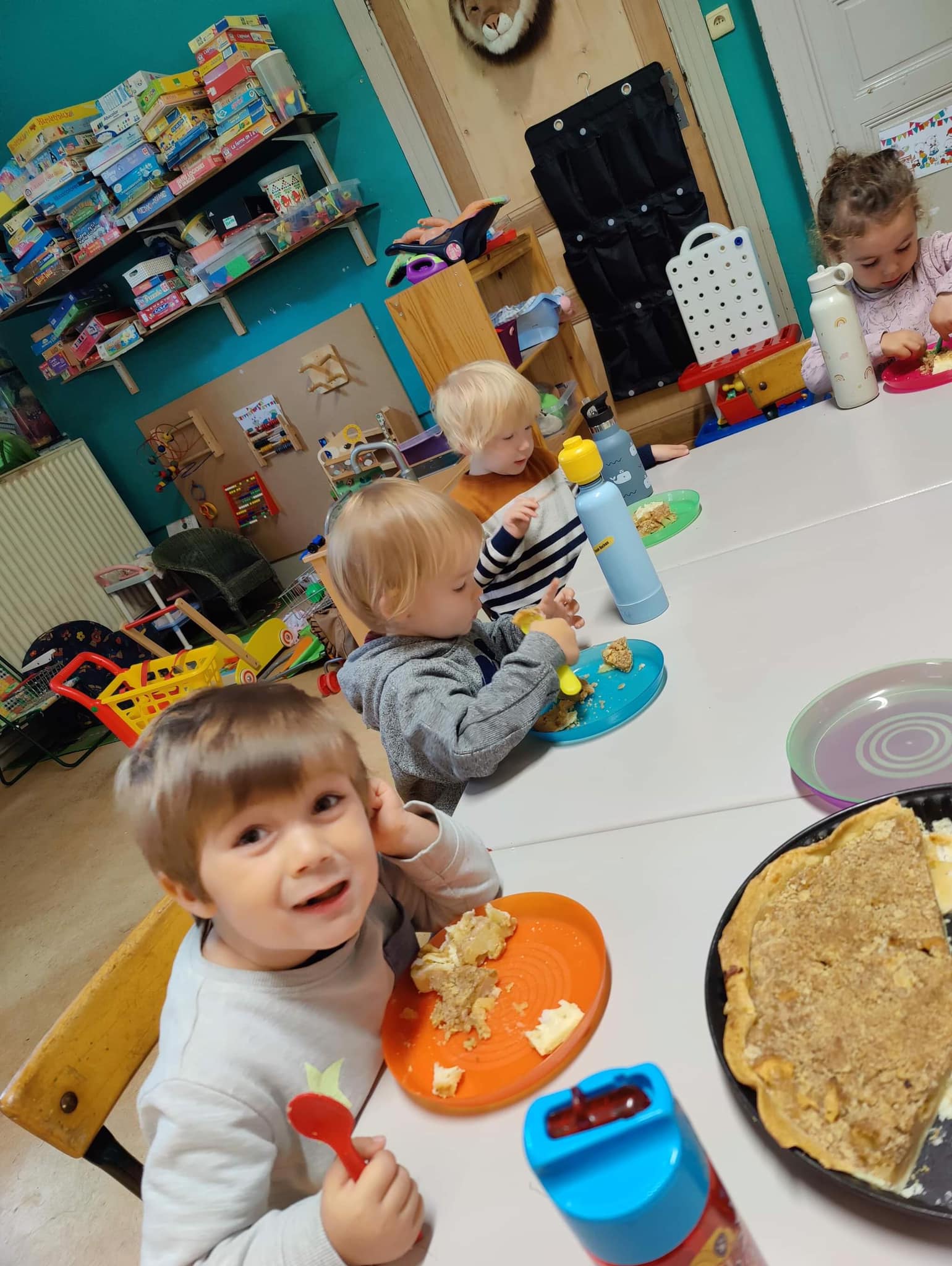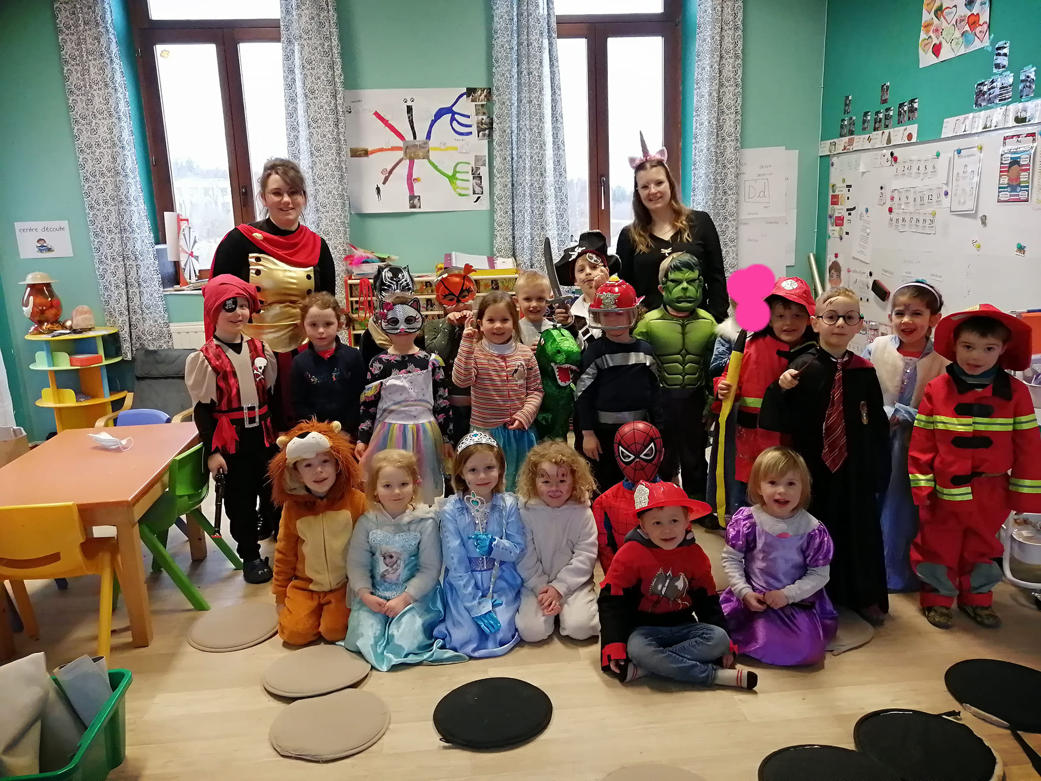 Halloween était à l’école cette semaine : chasse au trésor avec indices photos et lecture de plan, réalisation de gâteaux araignées et de soupe au potiron, escape game, lecture d’album par les grands de Madame Megan,… Pour terminer par la journée déguisée !
