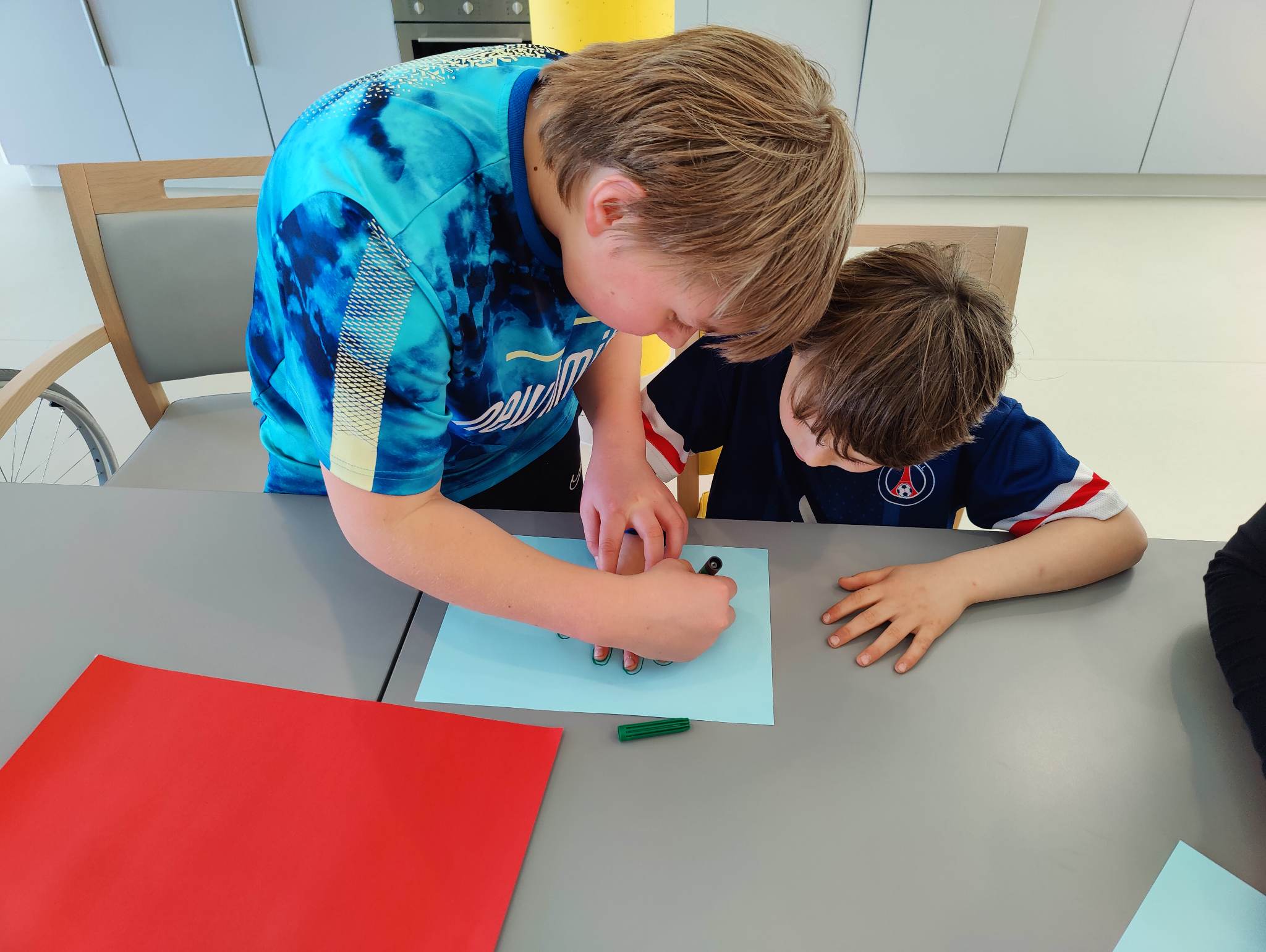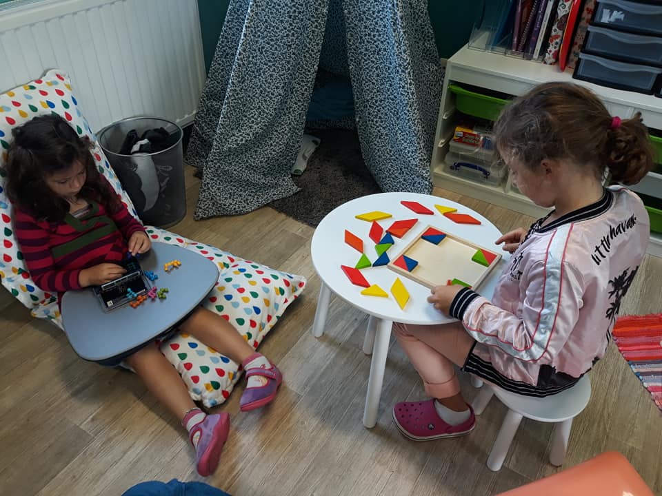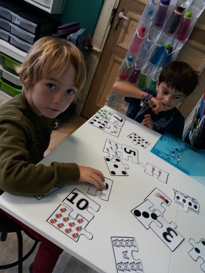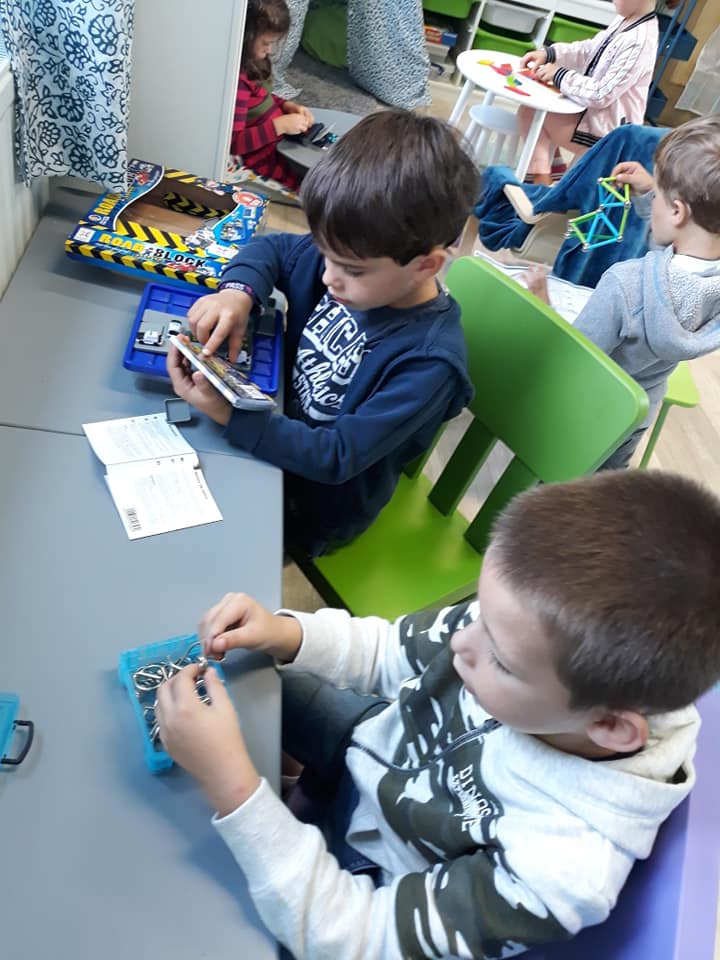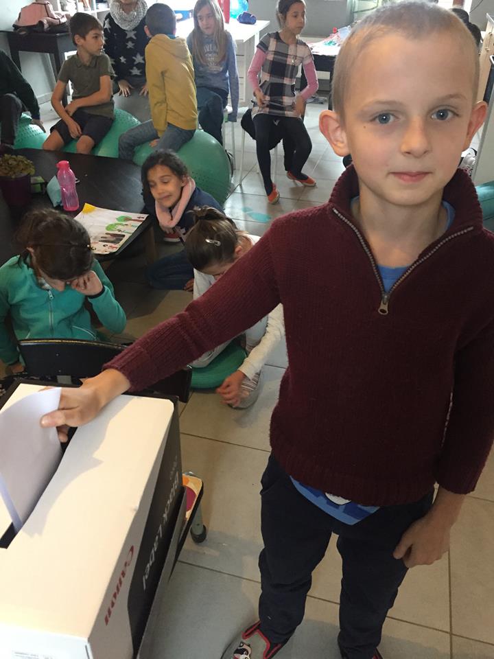 Les enfants se sont transformés en enseignants afin de préparer des défis mathématiques pour les classes inférieures. Ensuite, ils se sont rendus dans les différents groupes afin de proposer à leurs élèves d’un jour, les activités imaginées.