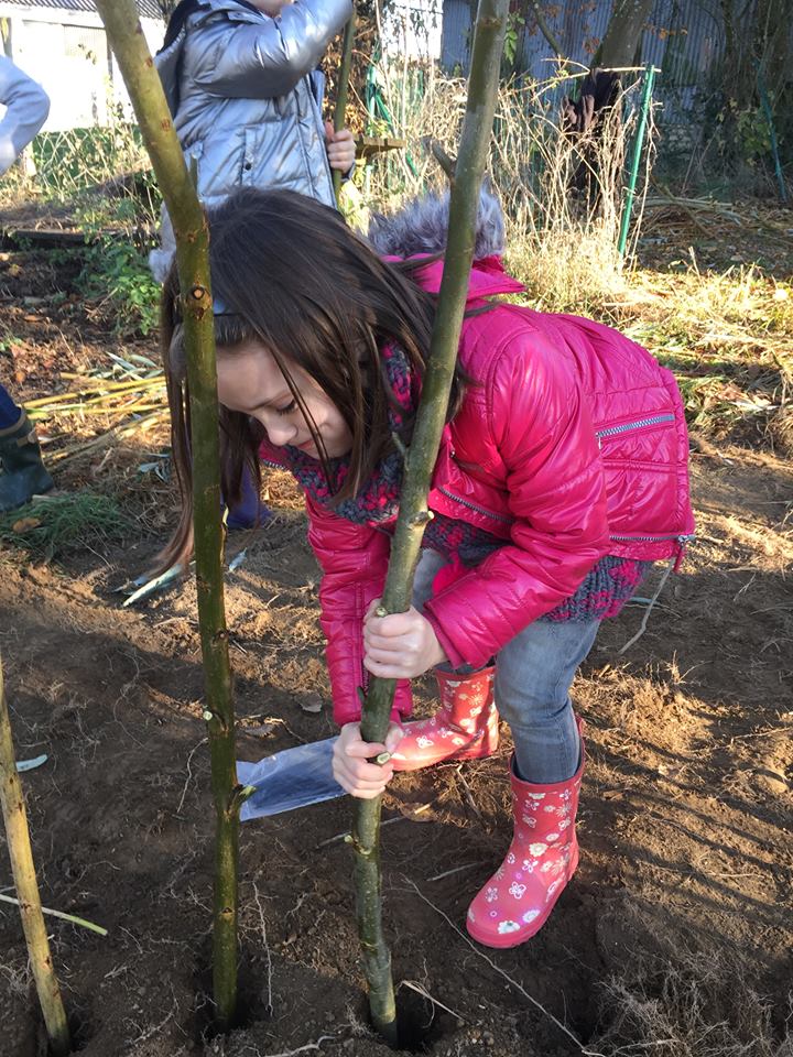 Plantation d’un arbre au centre de notre cour de récréation.