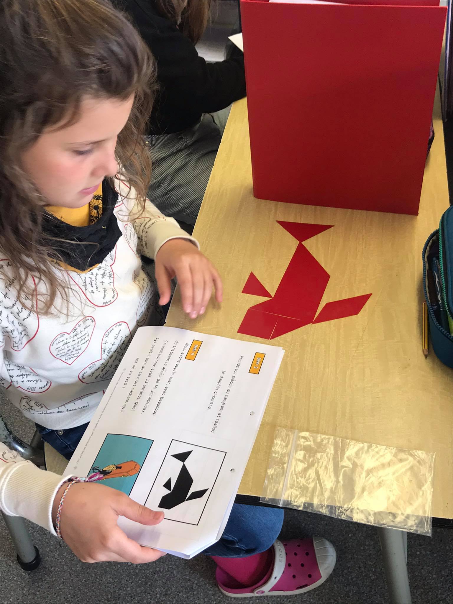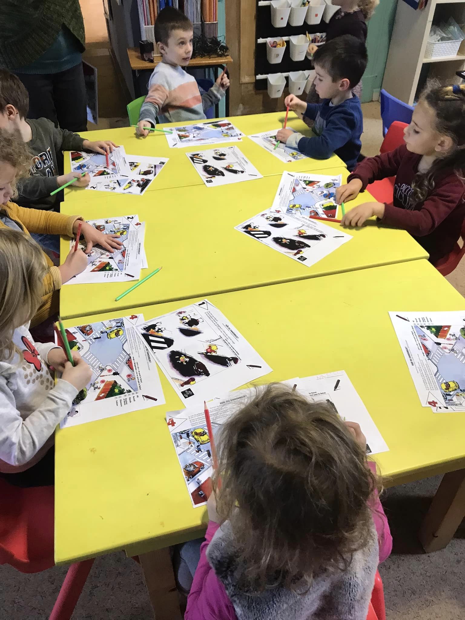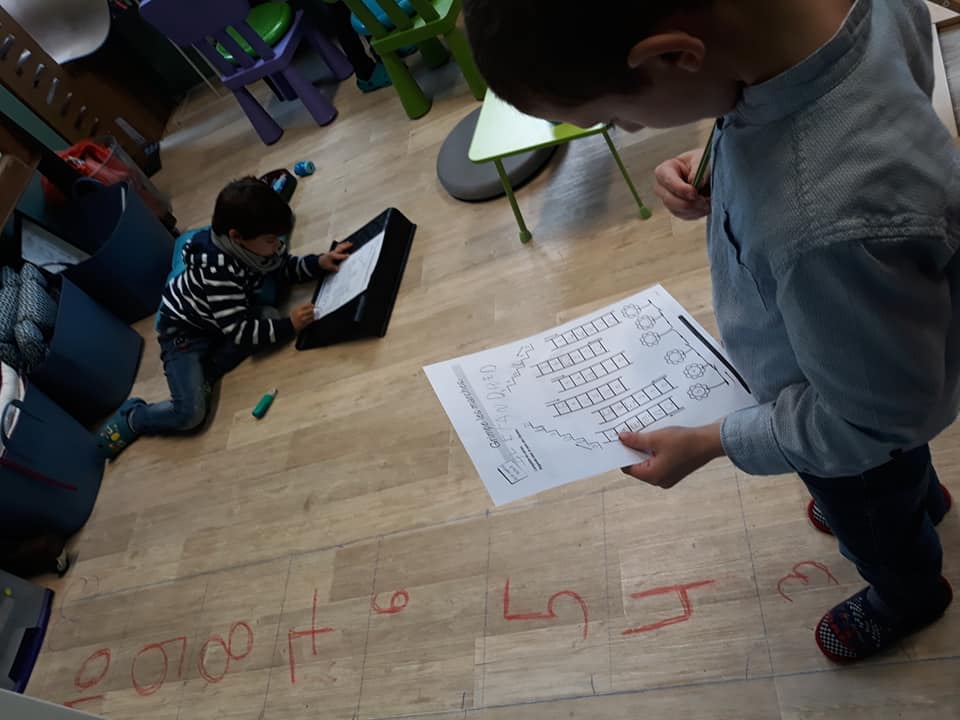 Les enfants se sont transformés en enseignants afin de préparer des défis mathématiques pour les classes inférieures. Ensuite, ils se sont rendus dans les différents groupes afin de proposer à leurs élèves d’un jour, les activités imaginées.