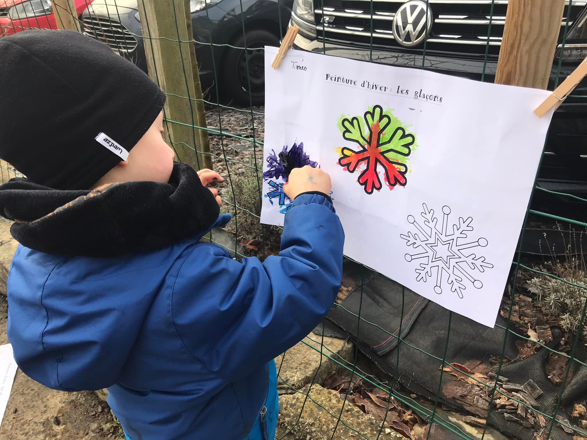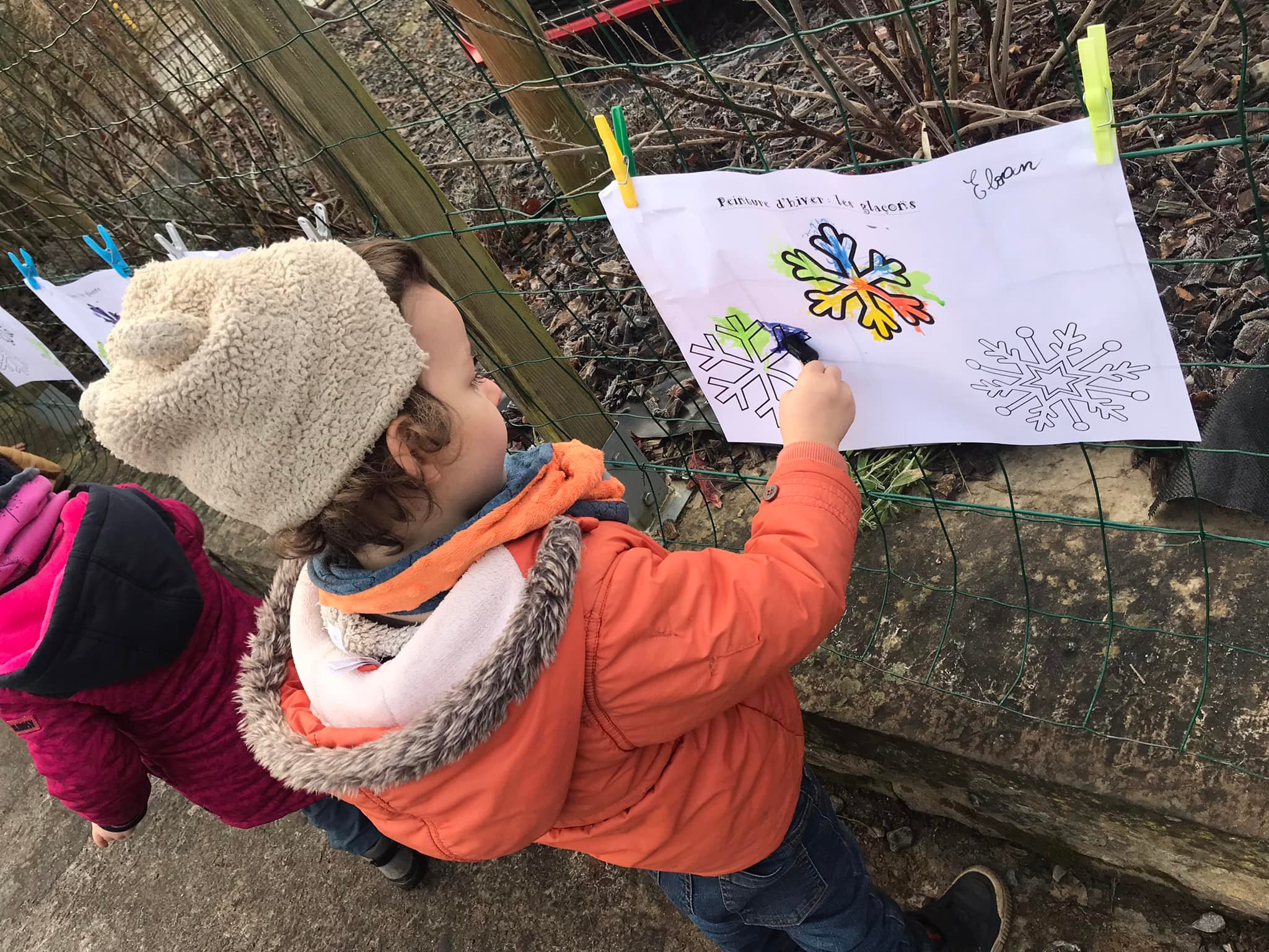 Ecole du dehors sous la neige