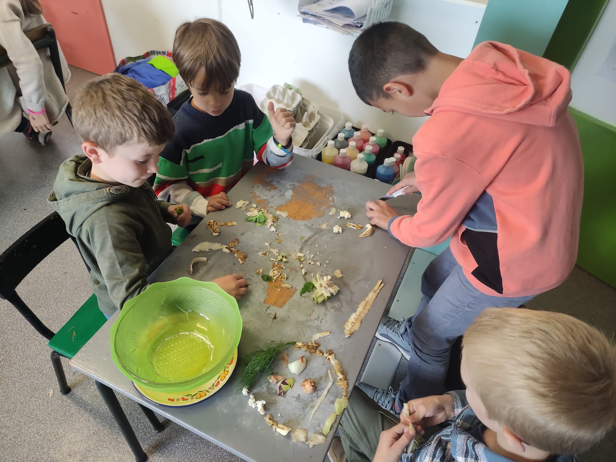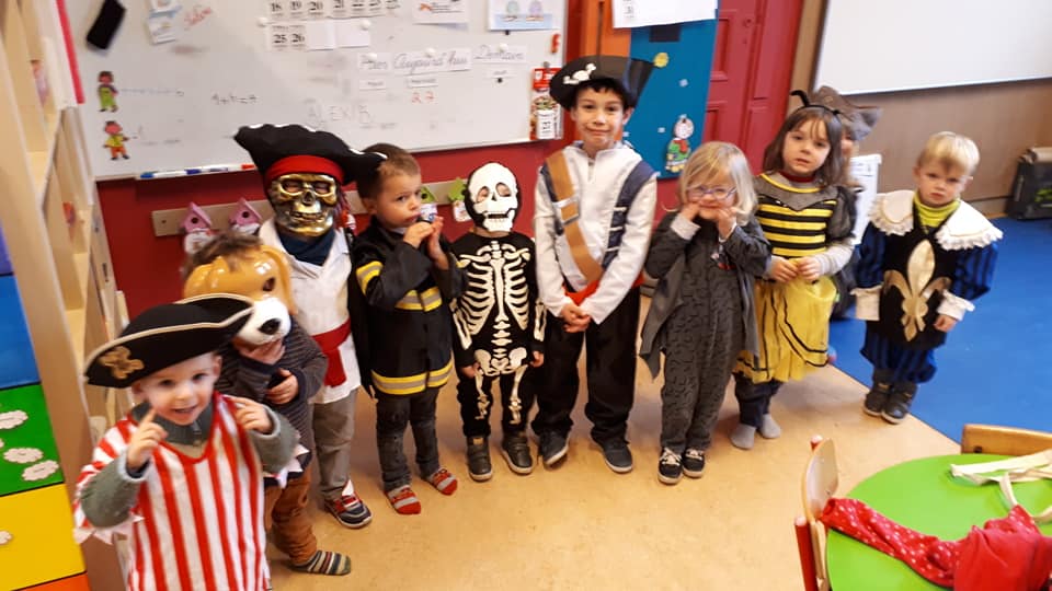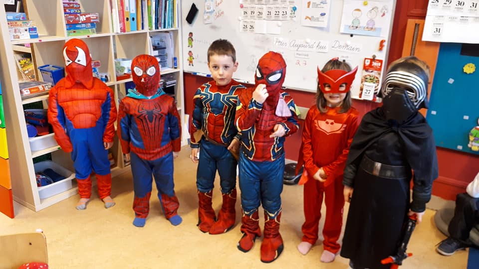 Halloween était à l’école cette semaine : chasse au trésor avec indices photos et lecture de plan, réalisation de gâteaux araignées et de soupe au potiron, escape game, lecture d’album par les grands de Madame Megan,… Pour terminer par la journée déguisée !